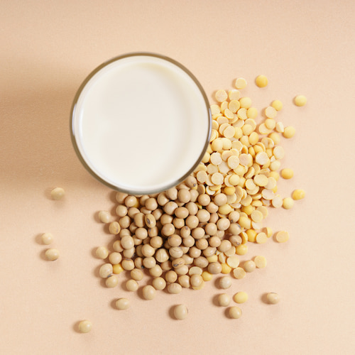 遺伝⼦組み換えではない国産無農薬⼤⾖で作られた⾖乳と、